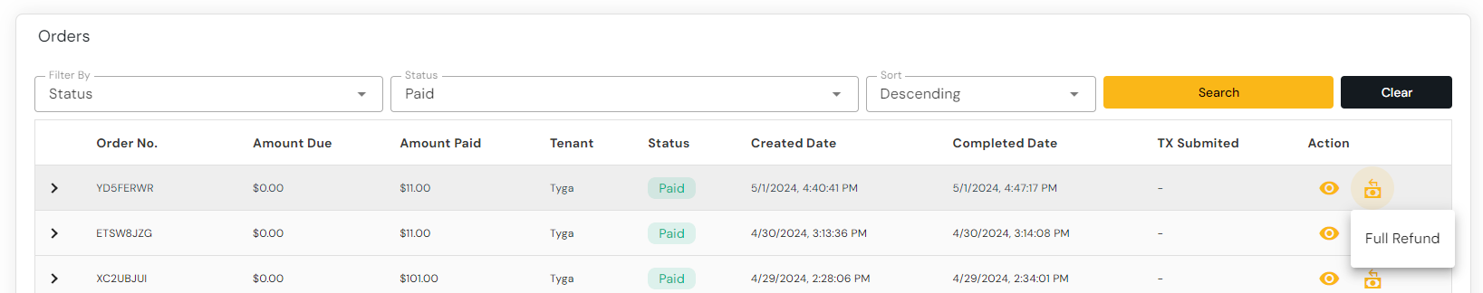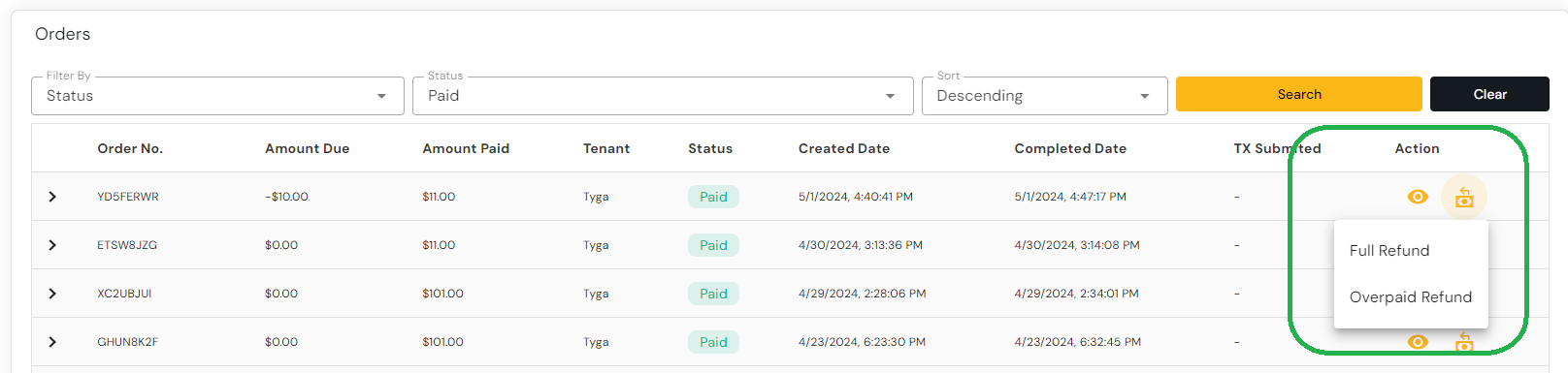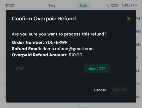 Follow the instructions to perform a Overpaid Order Refund.