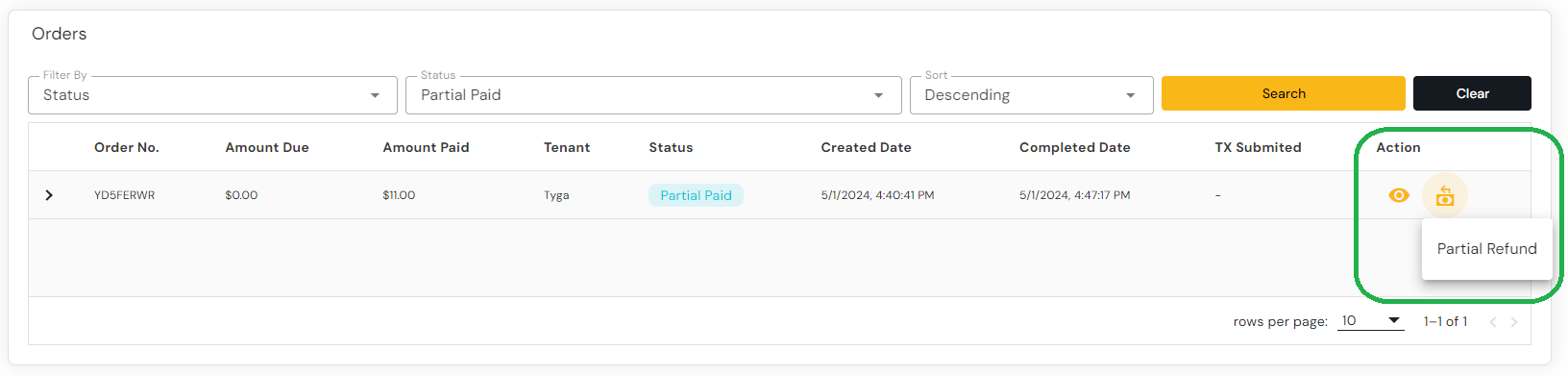 Follow the instructions to perform a Partial Paid Order Refund.